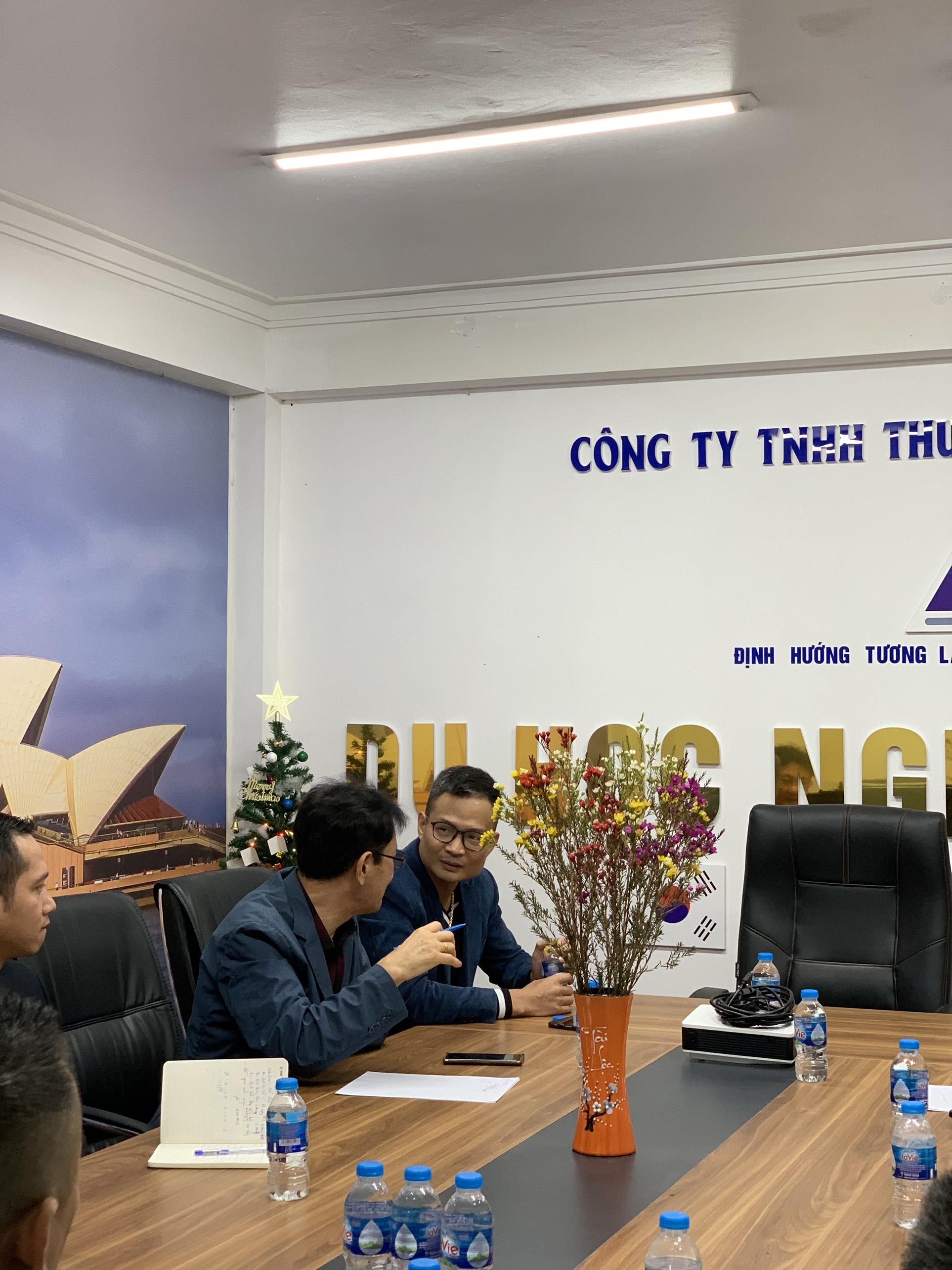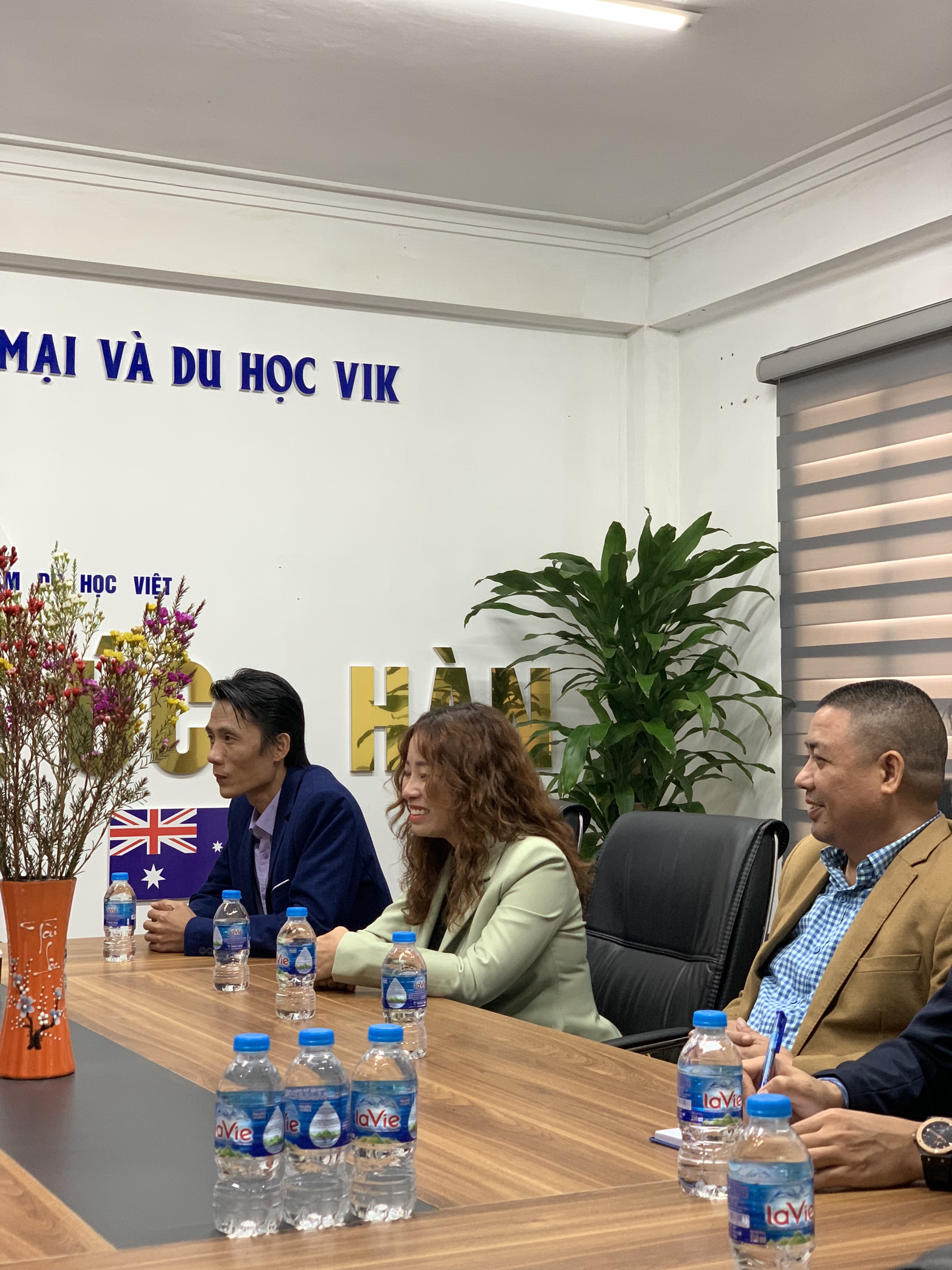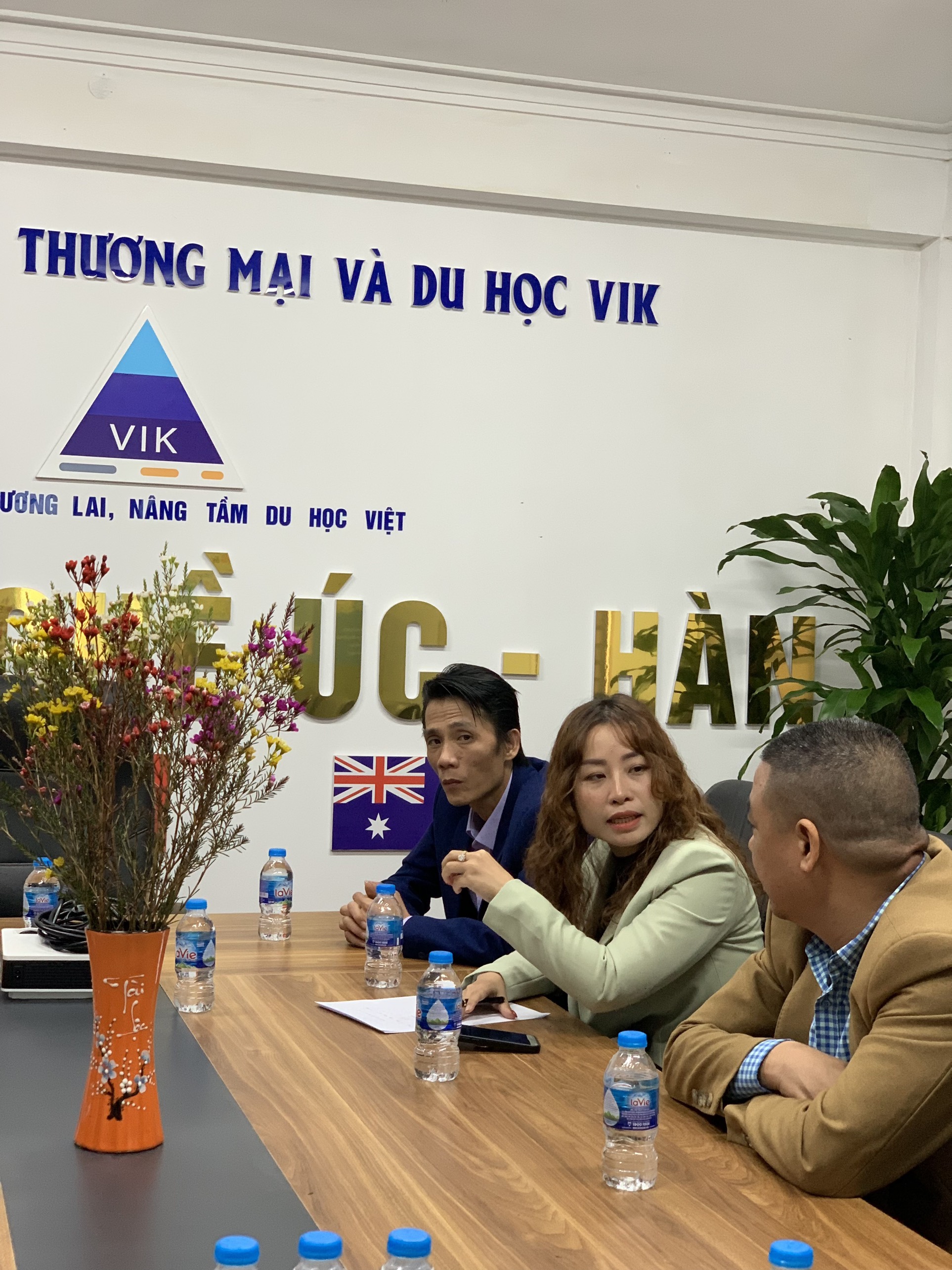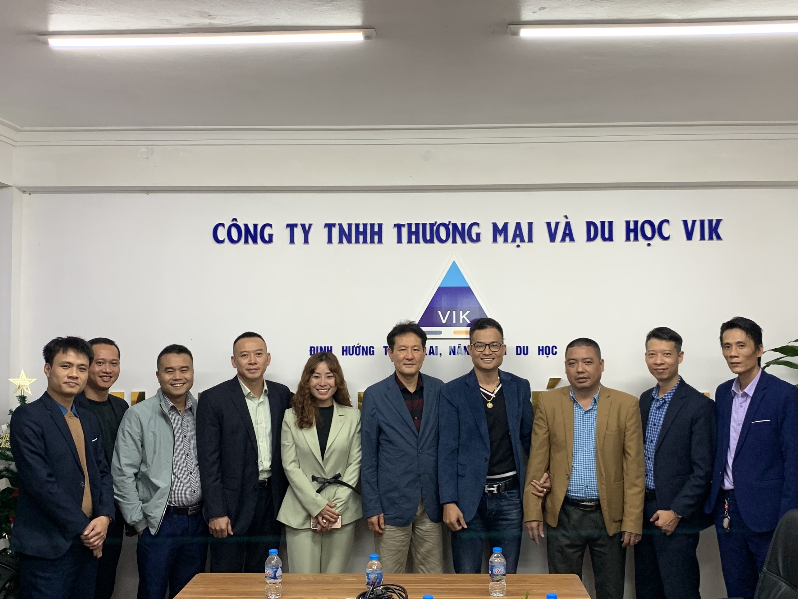 Đón tiếp và làm việc với CÔNG TY CỔ PHẦN CUNG ỨNG NHÂN LỰC QUỐC TẾ VÀ THƯƠNG MẠI SONA về phía CÔNG TY TNHH THƯƠNG MẠI VÀ DU HỌC VIK có Ông Đặng Huy Quỳnh - Tổng Giám Đốc Công Ty VIK; Ông Lê Văn Nghĩa - Phó Giám Đốc phụ trách điều hành Công Ty VIK; Ông Đỗ Trung Ngọc - Phó Giám Đốc phụ trách kinh doanh Công Ty VIK; Ông Choi Dae Hwan - Giám đốc Công Ty Thương Mại SAMSUNG.